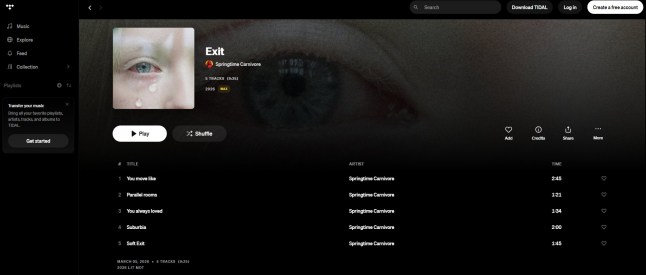 Pictured is the fake eight-track EP,which currently appears on her Tidal music page (Picture: TIDAL/Metro) – click to enlarge