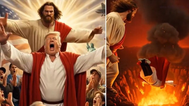 AI Trump and AI Jesus do battle: There can only be one winner(Picture: @IRANinTJ/X)It came after the embassy in Tajikistan shared an AI video of Jesus throwing Donald Trump down to hell after sucker punching him.Another shows the US leader as a minion,counting down to ‘reopen’ the Strait of Hormuz and failing each time.