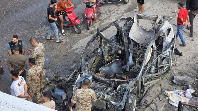 The aftermath of the Israeli drone strike outside in the city of Nabatieh,outside her son’s school (Picture: Getty)